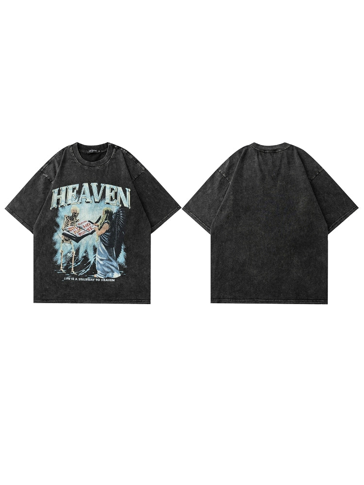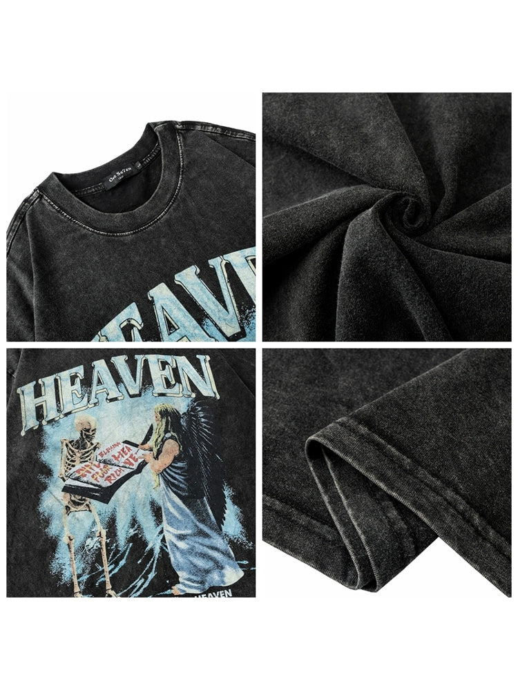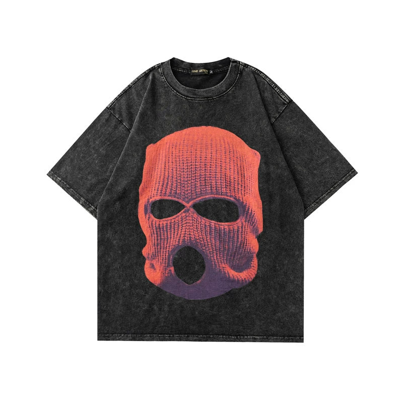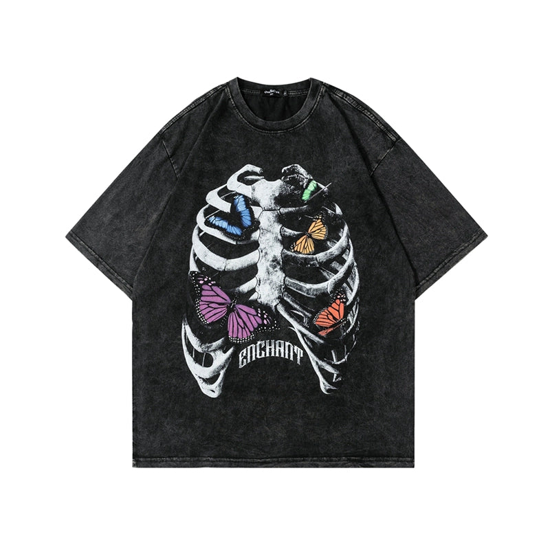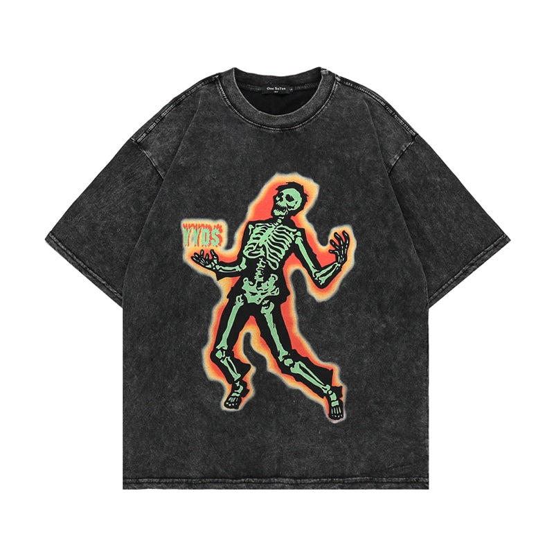 ヴィンテージウォッシュスカルグラフィックTシャツ - オーバーサイズハイストリートスタイル