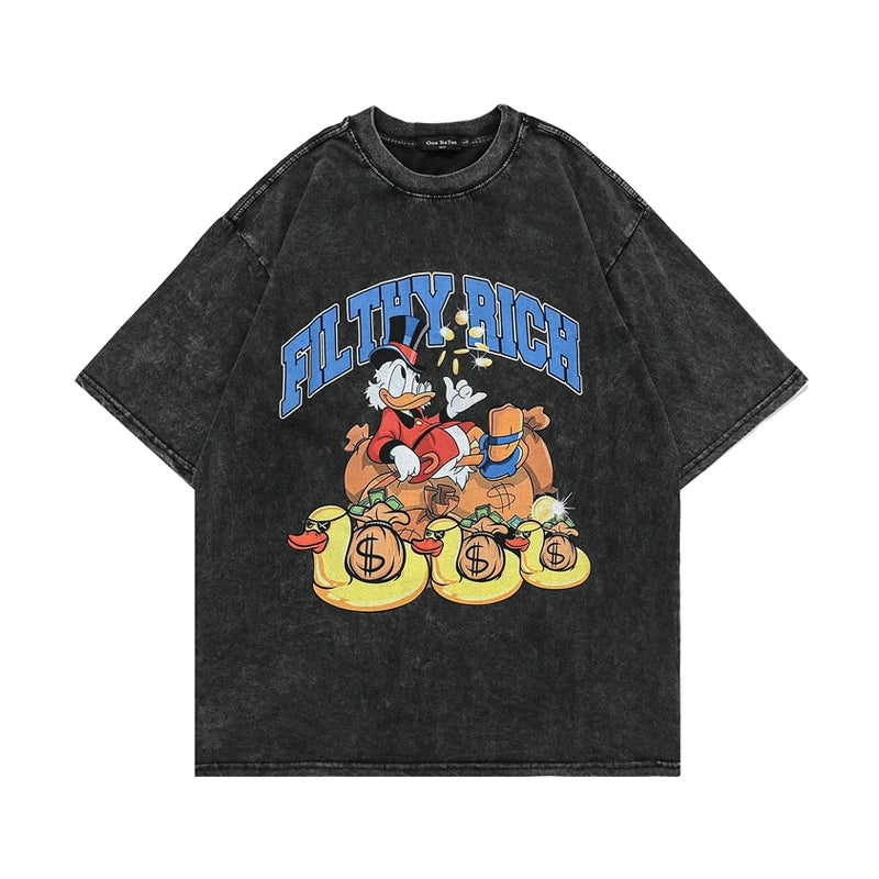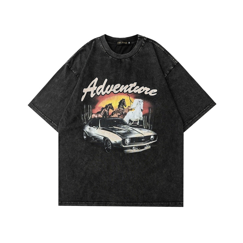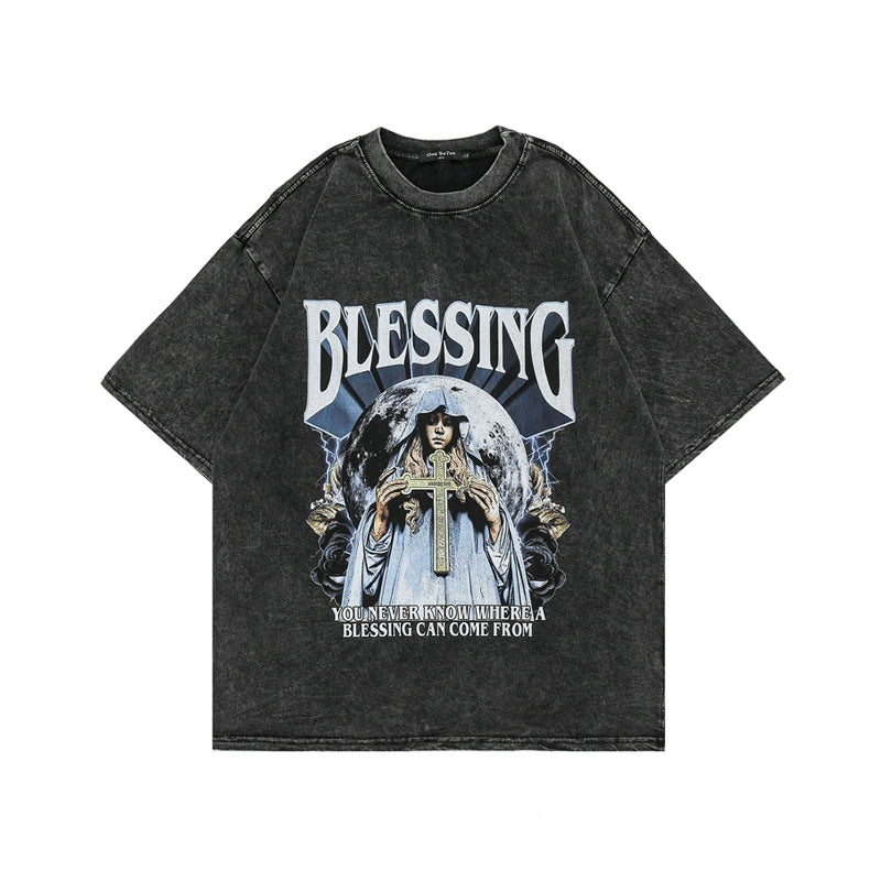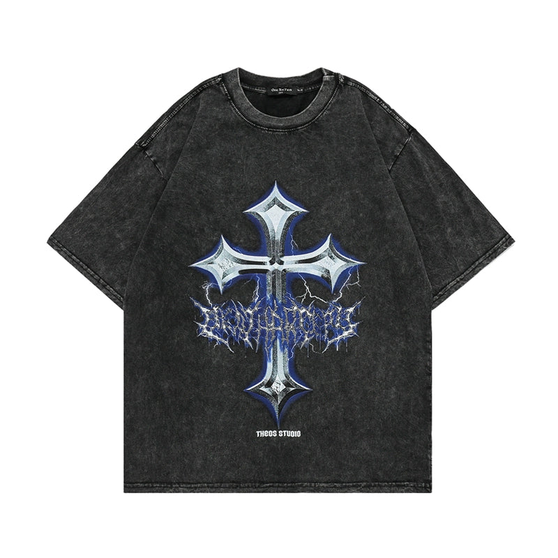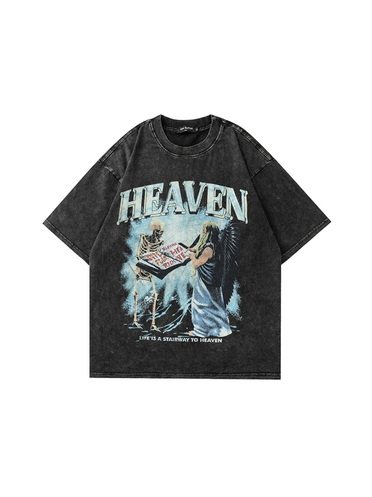 ヴィンテージウォッシュスカルグラフィックTシャツ - オーバーサイズハイストリートスタイル